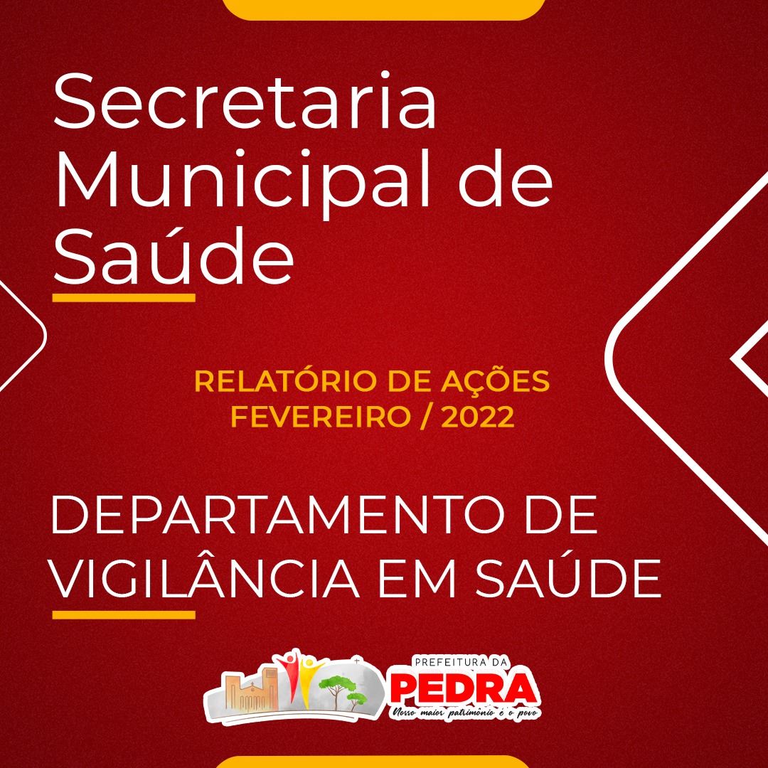 O Departamento de Vigilância em Saúde do município da Pedra editou publicação com informações técnicas-científicas, de caráter informativo para tornar público as ações desempenhadas no mês de fevereiro de 2022 no âmbito municipal. No documento constam informações como o total de nascidos vivos, óbitos, agravos e covid-19, notificações de Covid-19 do mês de fevereiro, evolução por dia, os mecanismos de redução e prevenção a Covid-19, vacinação, testagem, mecanismos de redução e prevenção a arboviroses e zoonoses (Tratamento de água, Dengue, Zika, Chikungunya, Leishmaniose e Chagas), mecanismo de controle e qualidade hídrica (Coletas de água para realização de análise laboratorial), e mecanismo de fiscalização sanitária (Cadastro e emissão de Licenciamento Sanitário e Denúncias sobre descumprimento de Leis Sanitárias).