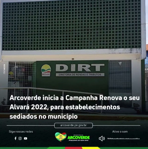 ARCOVERDE INICIA A CAMPANHA ‘RENOVA O SEU ALVARÁ 2022’, PARA ESTABELECIMENTOS SEDIADOS NO MUNICÍPIO