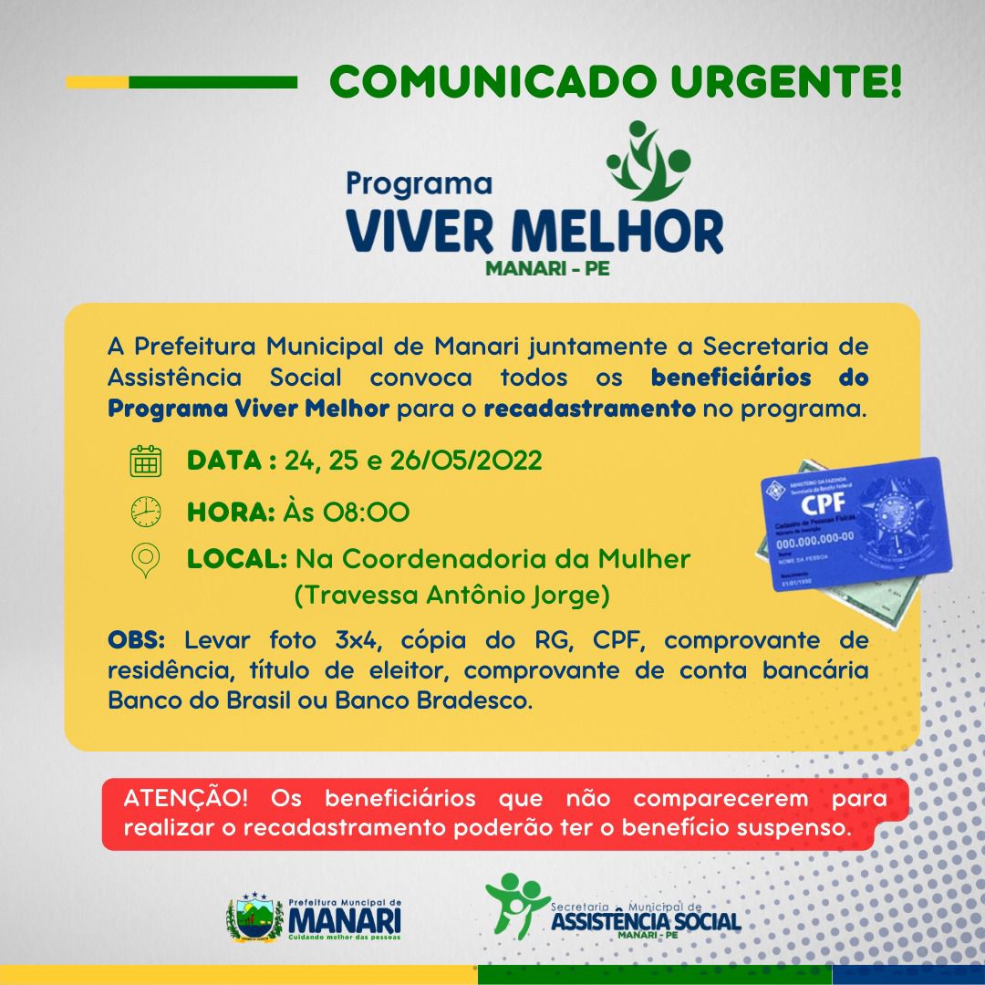 O secretário de Assistência Social, Lucas Freire, destaca a importância do benefício. “O Cartão viver melhor foi uma ideia do ex-prefeito Otaviano Martins, que ainda hoje é mantida, para ajudar famílias carentes. A prefeitura beneficia aquelas pessoas que estão desempregadas e que não recebem outros benefícios sociais. É uma forma de garantir que todos tenham alimento na mesa”. Afirmou.