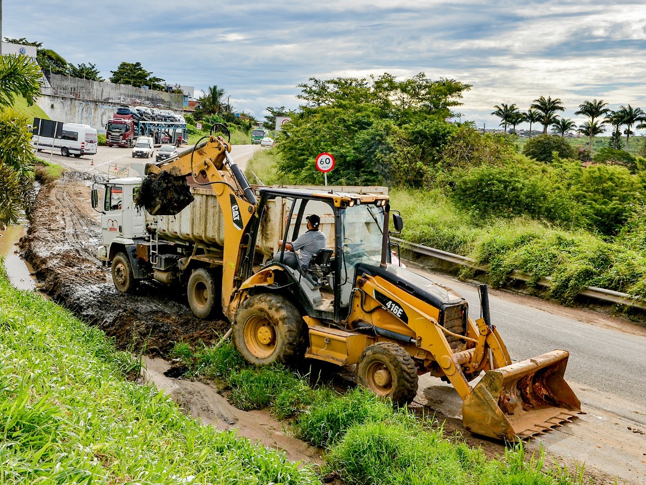 Até o momento foi preciso realizar a desobstrução das canaletas, tubulações e caixa de inspeção do sistema de drenagem. A Secretaria tem contado com o apoio da Polícia Rodoviária Federal (PRF) e também do Departamento Nacional de Infraestrutura de Transportes (DNIT), que administra as rodovias federais e deverá dar seguimento após a entrega dos serviços por parte do poder público municipal.