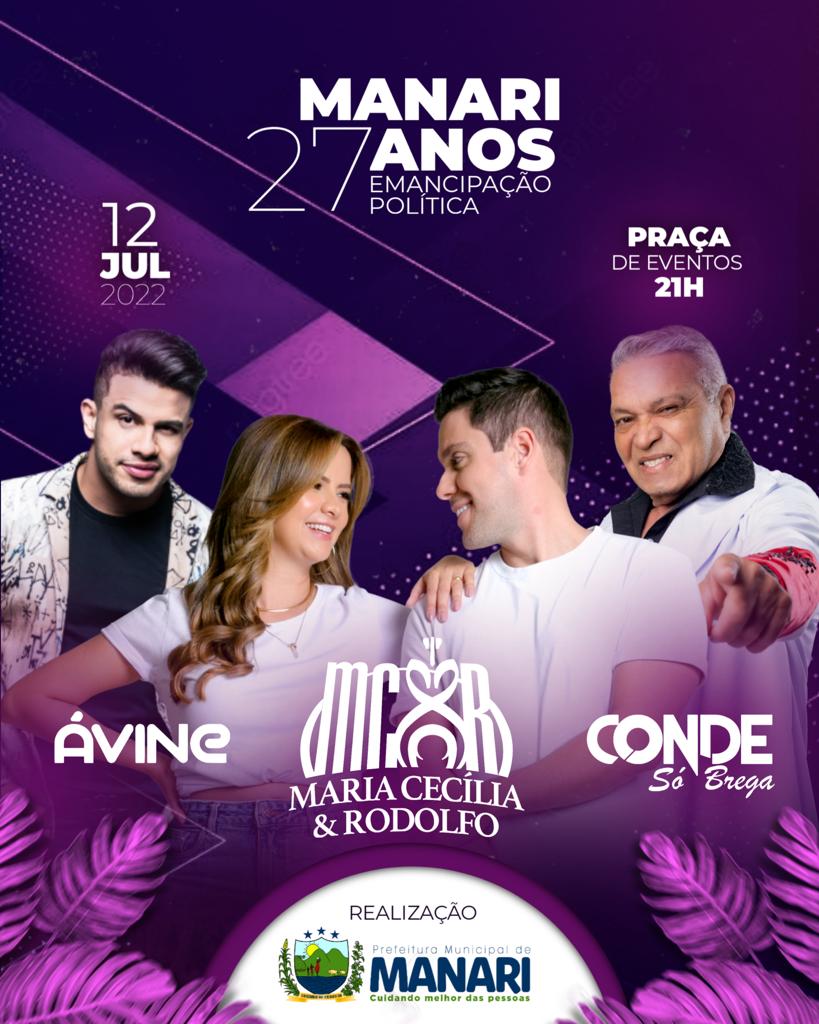 Na terça-feira dia 12 de julho de 2022, o município de Manari completa 27 anos de progresso