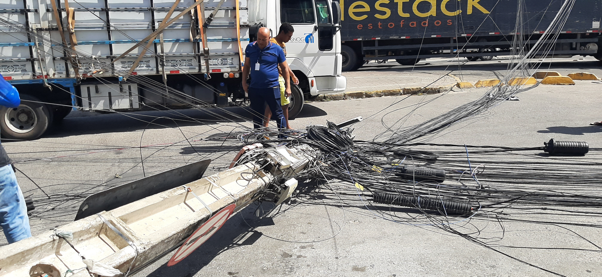Um caminhão derrubou um poste no centro de Arcoverde. O acidente ocorreu no início da tarde desta segunda-feira(24.10.2022).