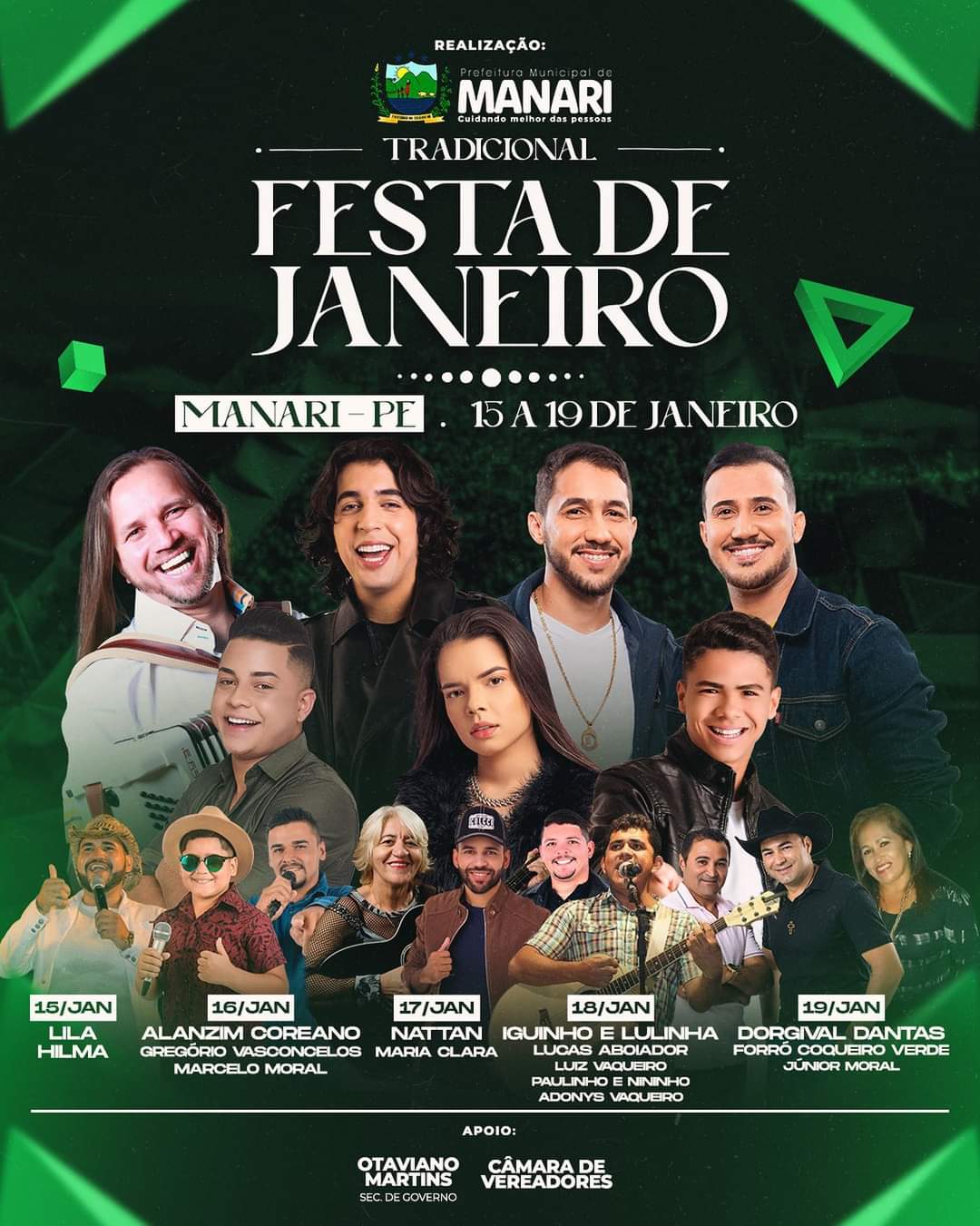 Tem início neste domingo(15.01.2023), na Praça de Eventos, em Manari, a tradicional Festa de Janeiro.
