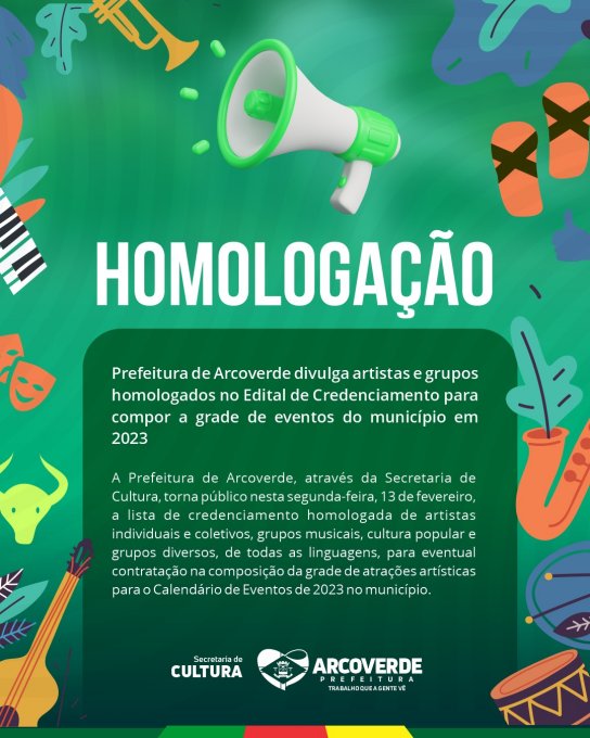 através da Secretaria de Cultura, torna público nesta segunda-feira, 13 de