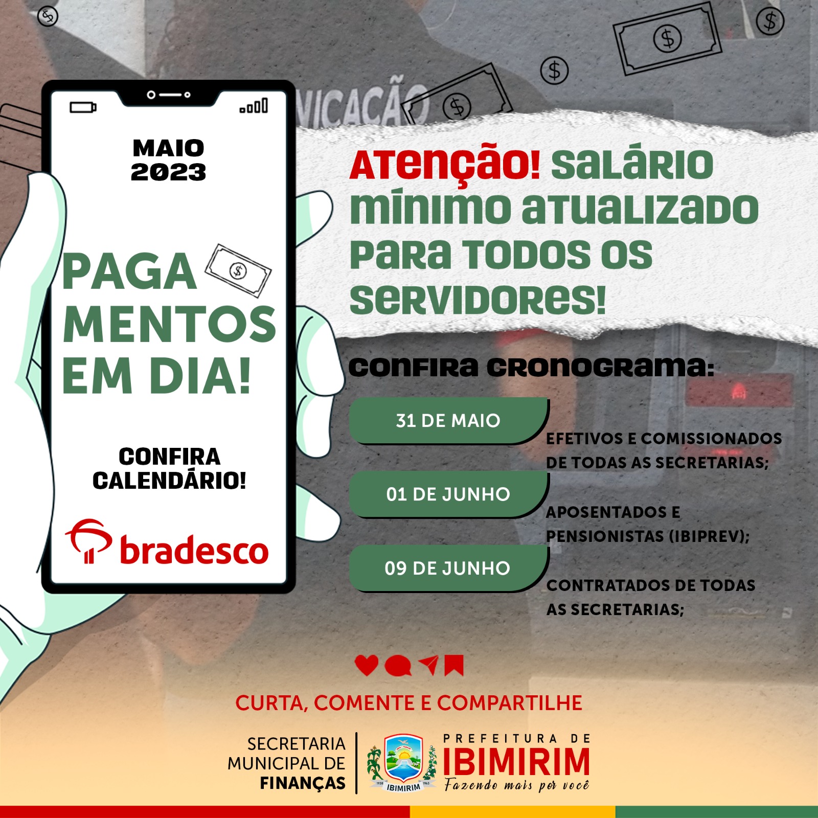 quarta-feira(31.05.2023), os salários dos servidores municipais efetivos.