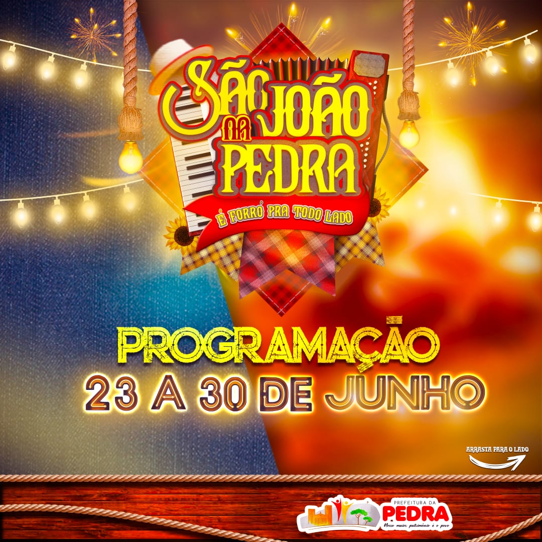 A programação segue desta sexta-feira, 23 até o dia 30 de junho, com o tema "São João na Pedra, é Forró Pra Toda Lado"