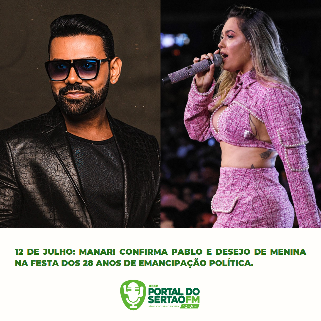 Pablo, uma das vozes mais românticas do Brasil. Também foi anunciado pela prefeitura a apresentação do cantor da terra, Luiz Vaqueiro.