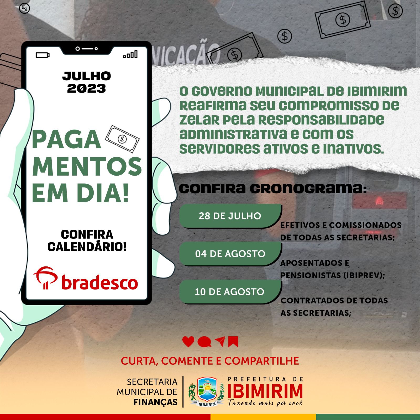 O secretário de finanças Werlly Siqueira, divulgou o calendário de pagamentos completo. "Seguindo determinação do prefeito Welliton Siqueira, foi depositado nesta sexta o valor referente aos vencimentos de todos os servidores efetivos. No próximo dia 04 de agosto, recebem os aposentados e pensionistas da prefeitura e no dia 10, receberão seus salários todos os servidores contratados. Mais uma vez, mesmo com a diminuição nos repasses, conseguimos honrar os compromissos", afirmou.
