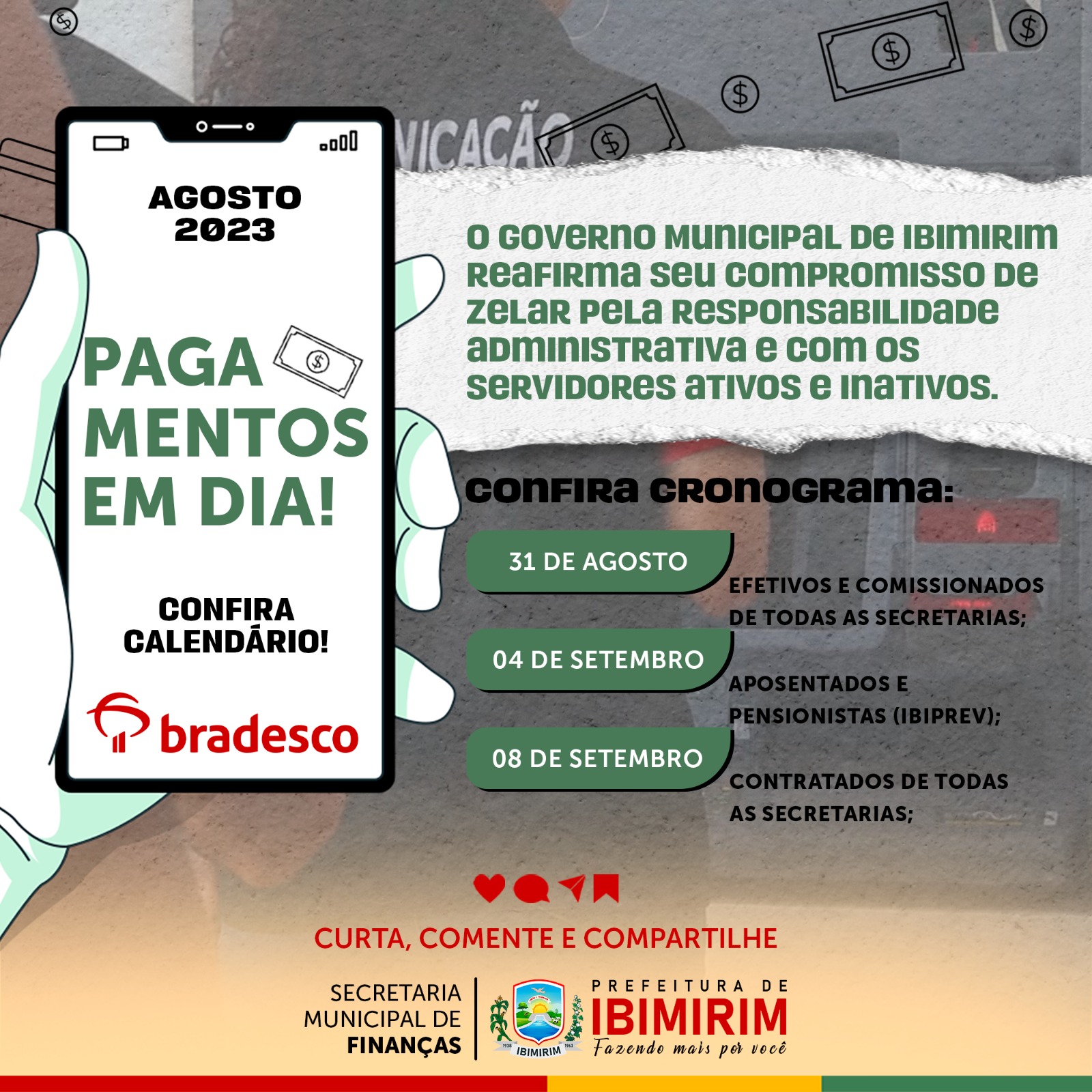 O prefeito confirmou o pagamento dos servidores efetivos para esta quinta-feira(31.08.2023), mantendo mais uma vez os lançamentos dentro do mês trabalhado, assim como acontece desde 2021.