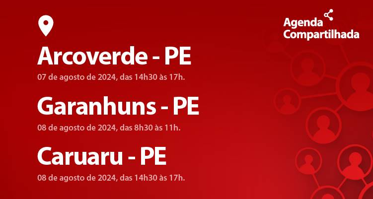 Circunscrições. As reuniões serão nas sedes de Arcoverde (Sertão), Garanhuns e