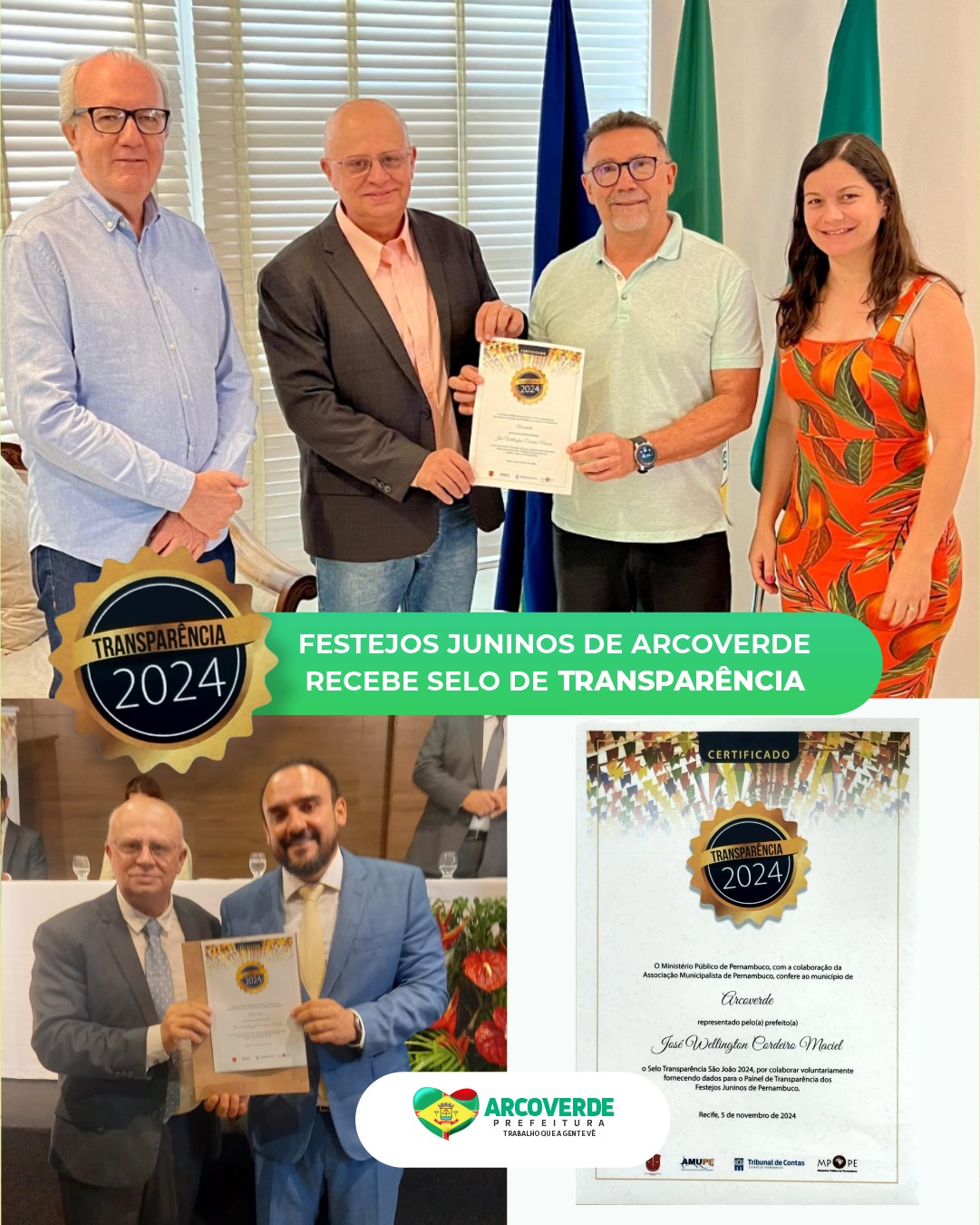 O Ministério Público de Pernambuco (MPPE), juntamente com o Tribunal de Contas do Estado (TCE) e Associação Municipalista de Pernambuco (AMUPE), reconheceram a lisura, transparência e organização dos Festejos Juninos do município portal do Sertão de Pernambuco, em nome do seu gestor José Wellington Cordeiro Maciel, concedendo o certificado com o Selo de Transparência São João 2024.