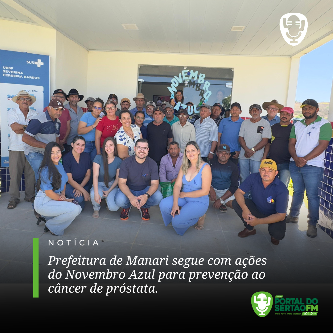 A Prefeitura de Manari, por intermédio da Secretaria Municipal de Saúde segue promovendo diversas ações de conscientização e prevenção ao câncer de próstata durante este mês de novembro, em alusão à campanha Novembro Azul. A iniciativa que tem como meta alertar a população masculina sobre a importância do diagnóstico precoce e dos cuidados com a saúde continua firme em sua programação na cidade e na zona rural.