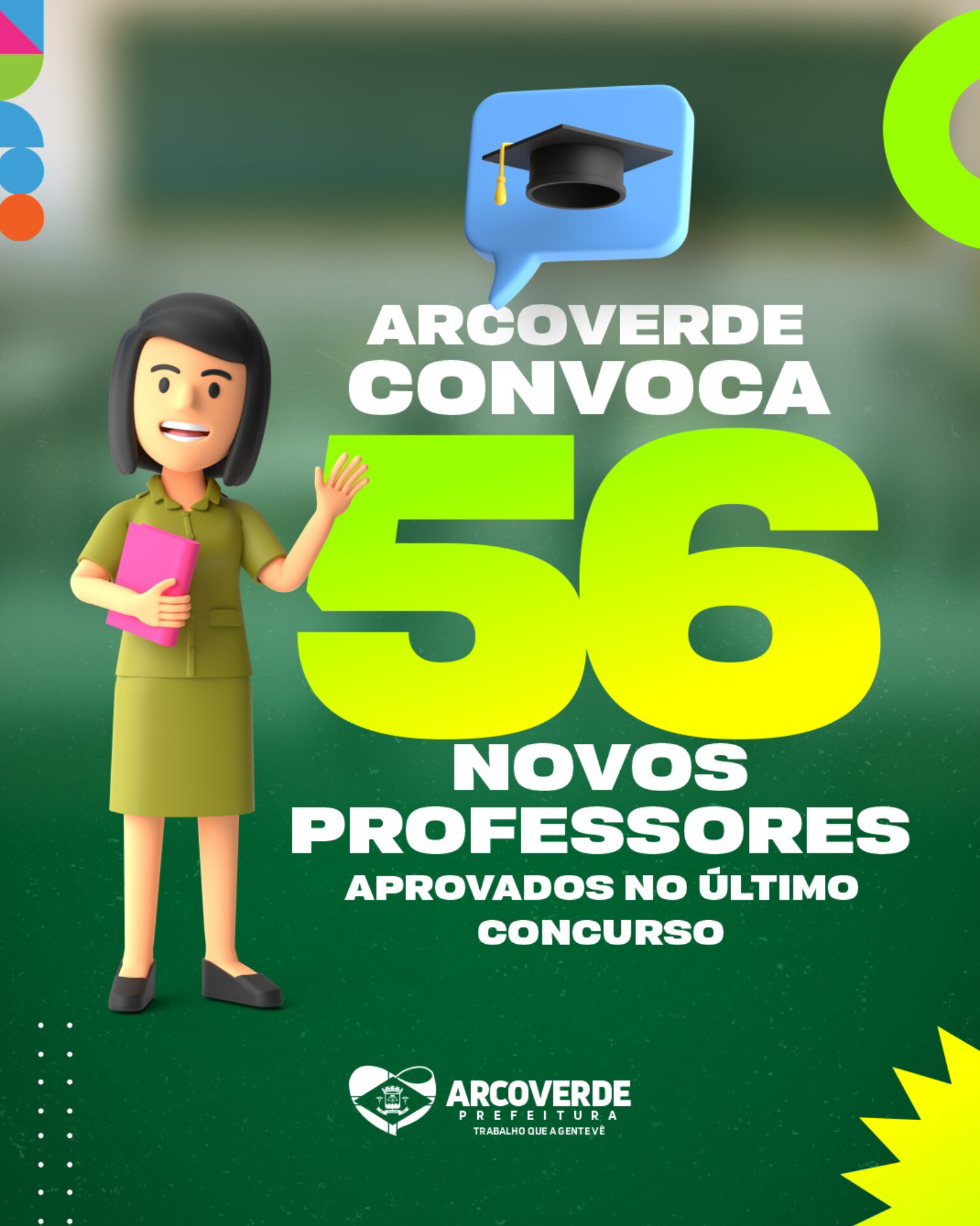 A Prefeitura de Arcoverde, por meio da Secretaria de Educação, informa que está iniciando nesta sexta-feira (27), a convocação de 56 Professores que foram aprovados em Concurso Público do município, realizado neste ano de 2024.