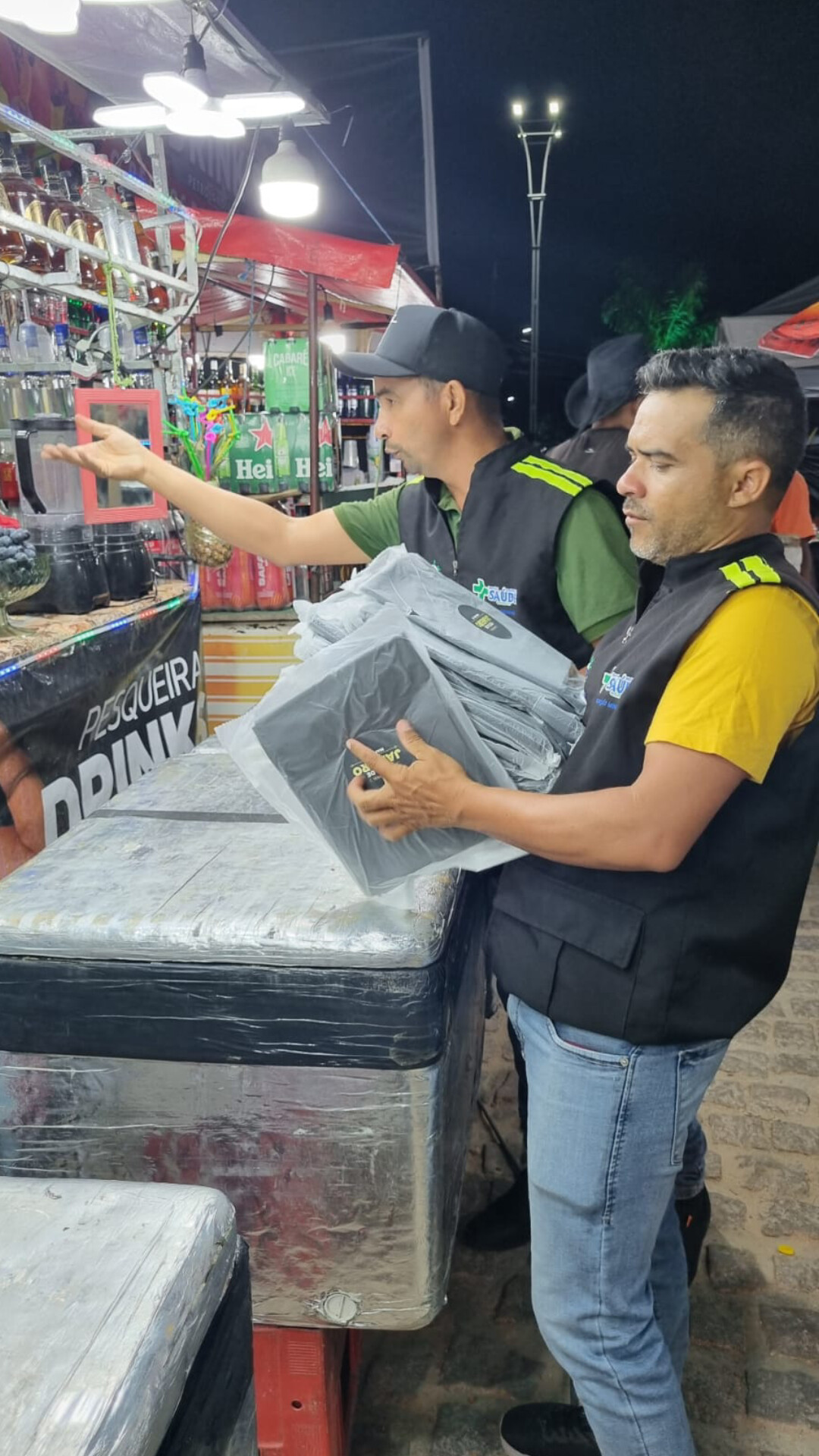 Com o objetivo de assegurar uma alimentação saudável e segura durante o evento, a Prefeitura, através da equipe da Vigilância Sanitária, distribuiu equipamentos de proteção individual (EPIs) e kits de produtos de higiene a comerciantes locais.