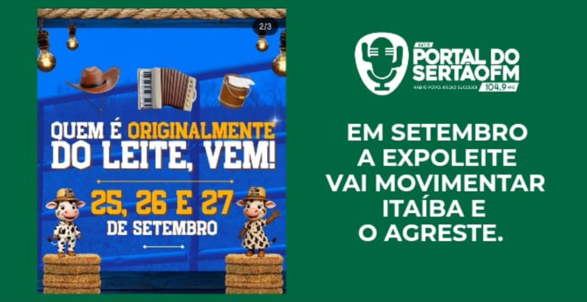 Nos dias 25, 26 e 27 de setembro de 2025, Itaíba vai vivenciar a 3ª edição da ExpoLeite, um evento que movimenta o município e destaca a força da pecuária leiteira na região.