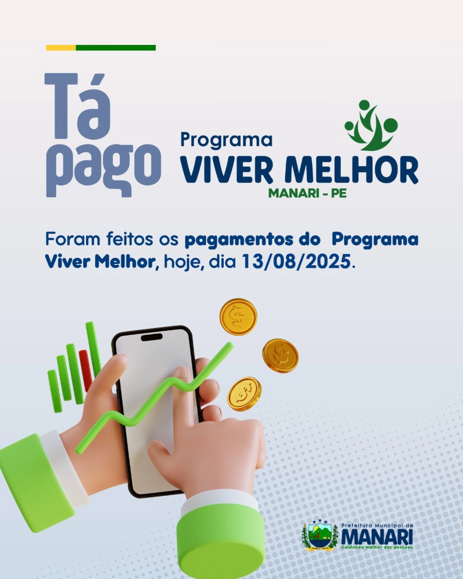 A Prefeitura Municipal de Manari anunciou a conclusão dos pagamentos do Programa Viver Melhor, realizado neste dia(13.08.2025). Este programa de transferência de rendas oferece bolsas que auxiliam famílias de baixa renda no município, garantindo um reforço importante no orçamento familiar.