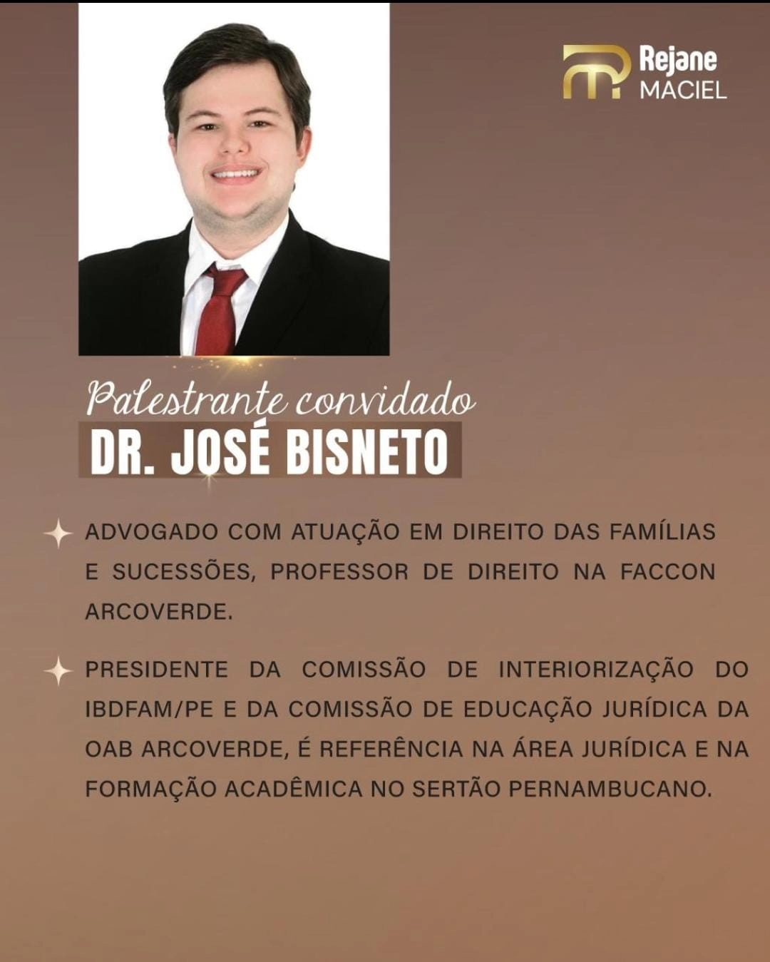 Dr. José Bisneto: Advogado e professor, referência jurídica no Sertão, abordando o Direito das Famílias e Sucessões sob a ótica empresarial.