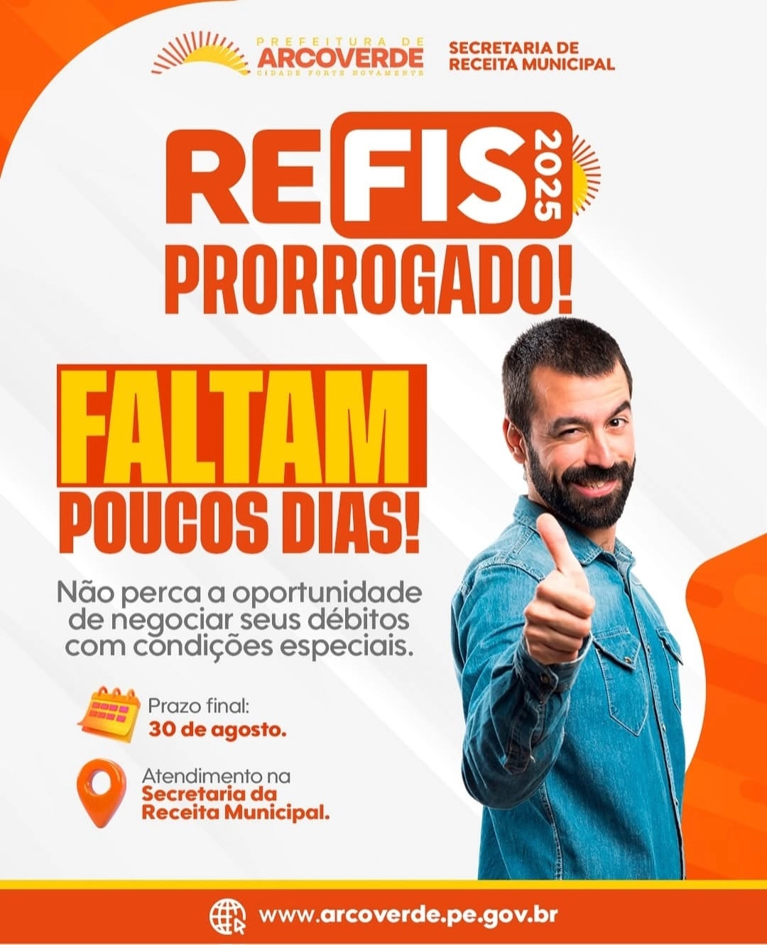 REFIS PRORROGADO EM ARCOVERDE: ÚLTIMOS DIAS PARA NEGOCIAÇÃO DE DÉBITOS.