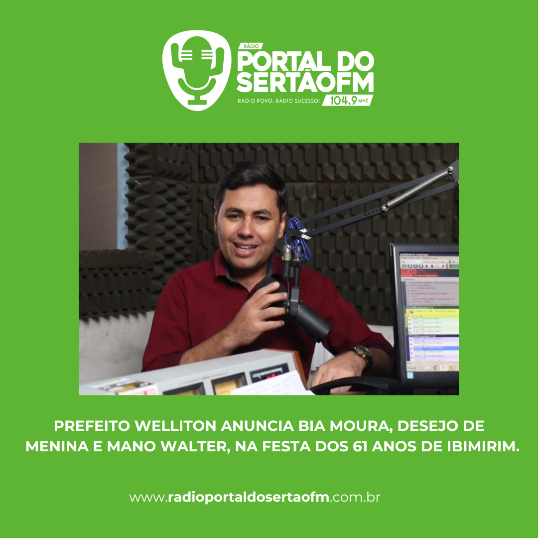 Welliton Siqueira(PSDB), anunciou nesta quarta-feira(27), as atrações da festa de comemoração dos 61 anos de emancipação política do município, que acontecerá