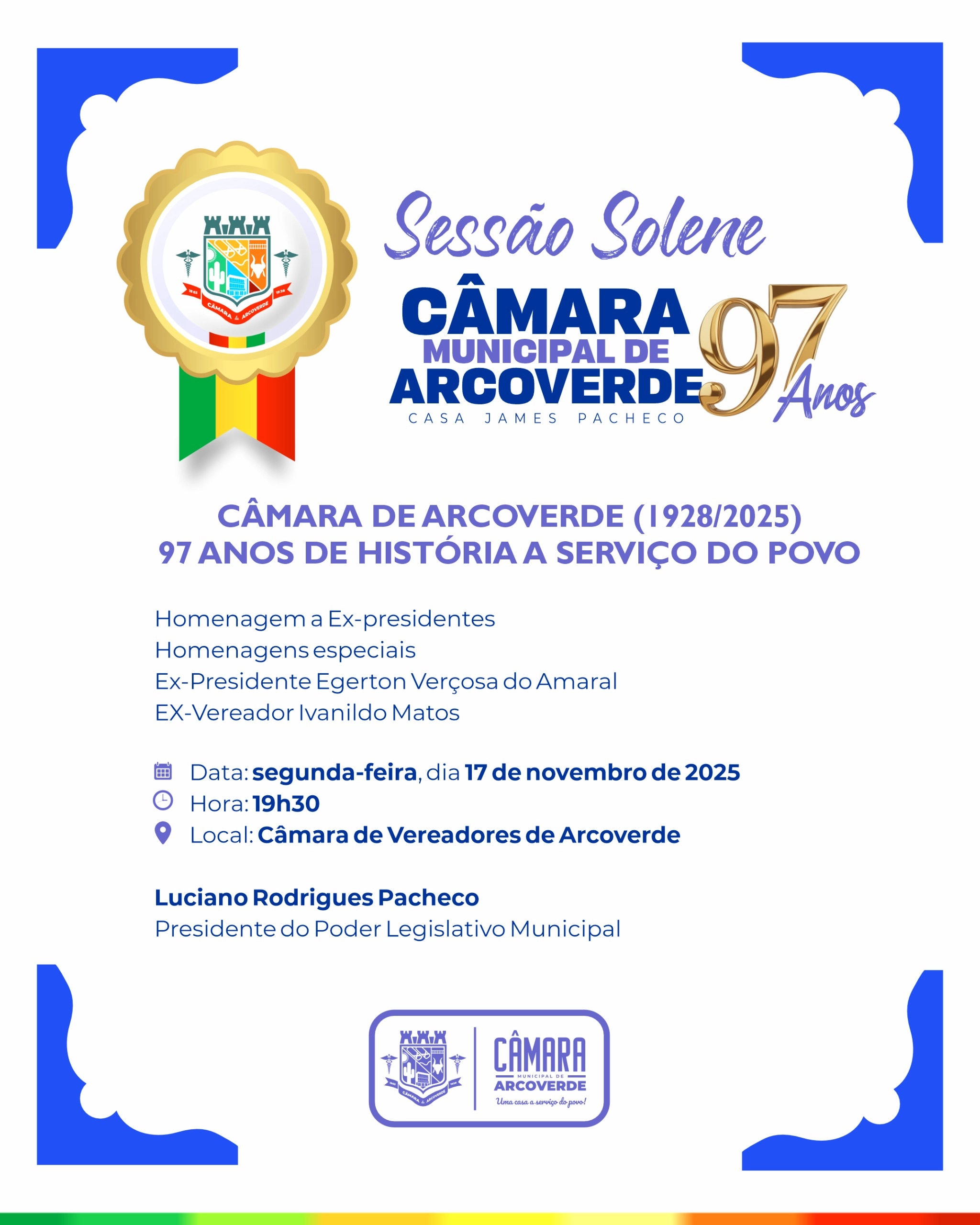 CÂMARA MUNICIPAL DE ARCOVERDE COMPLETA 97 ANOS COM HOMENAGENS A EX-PR...